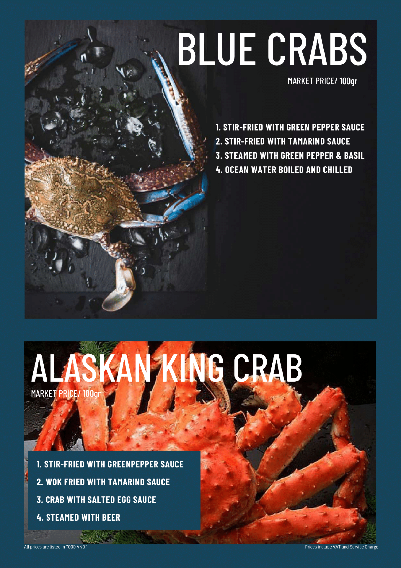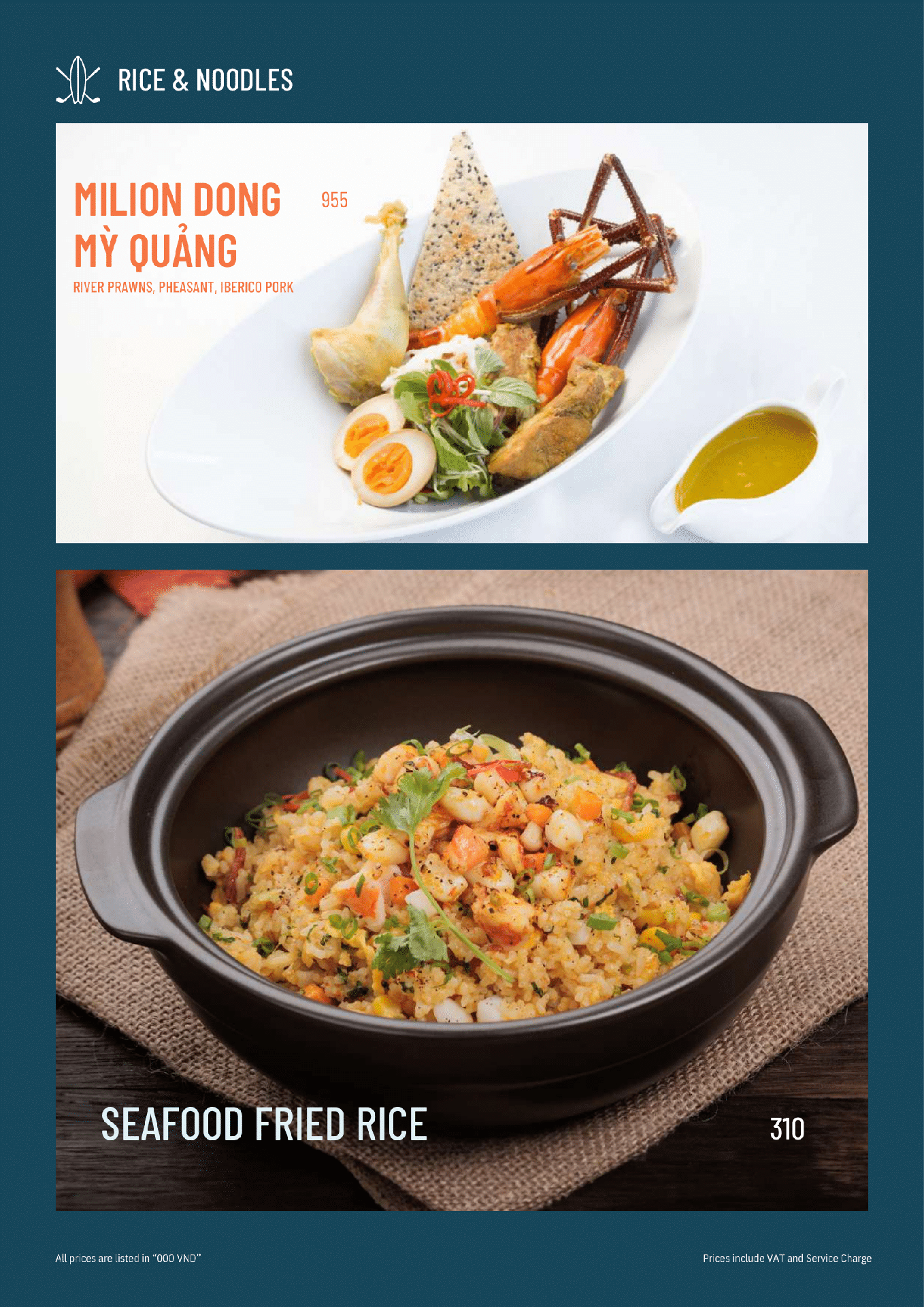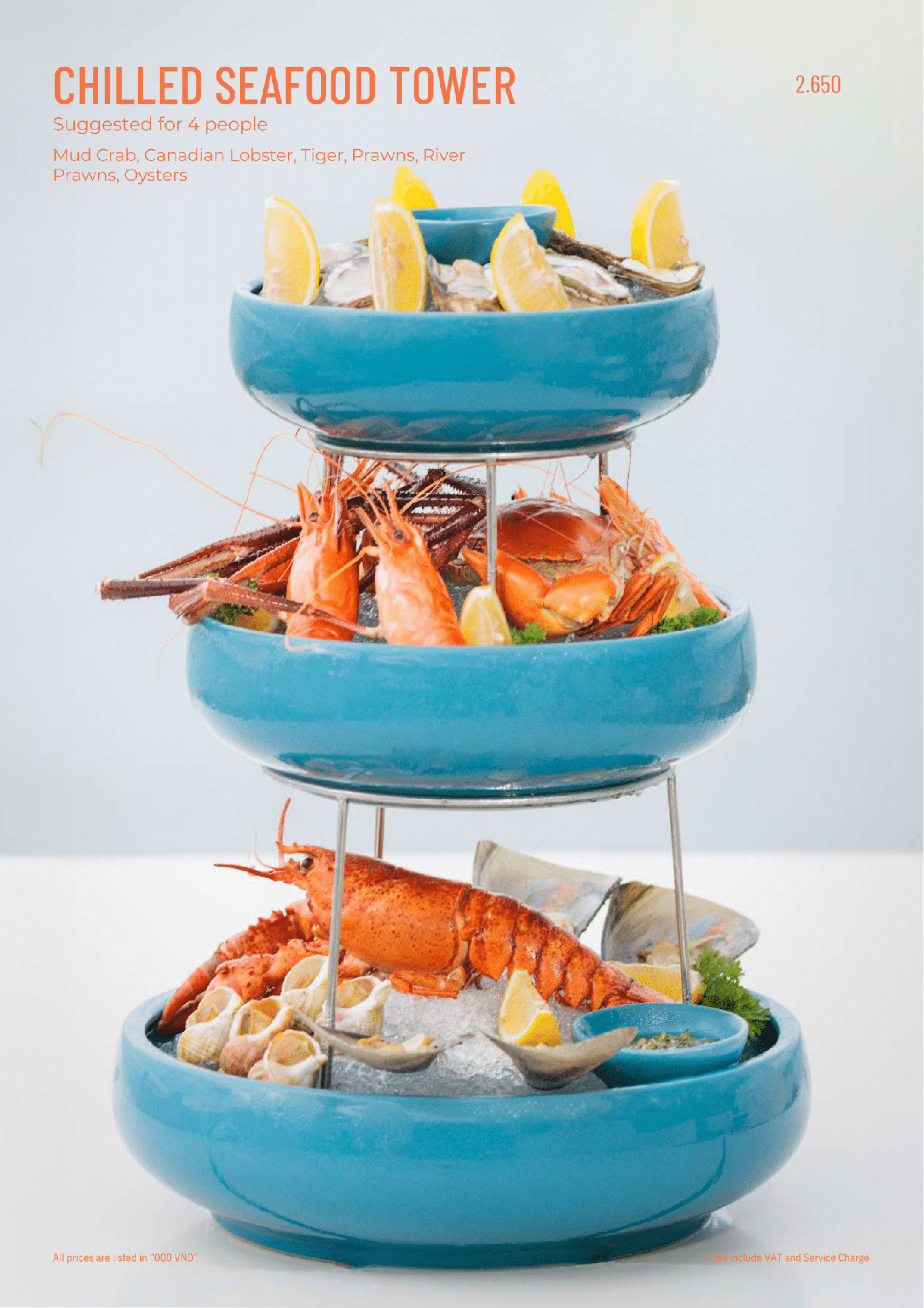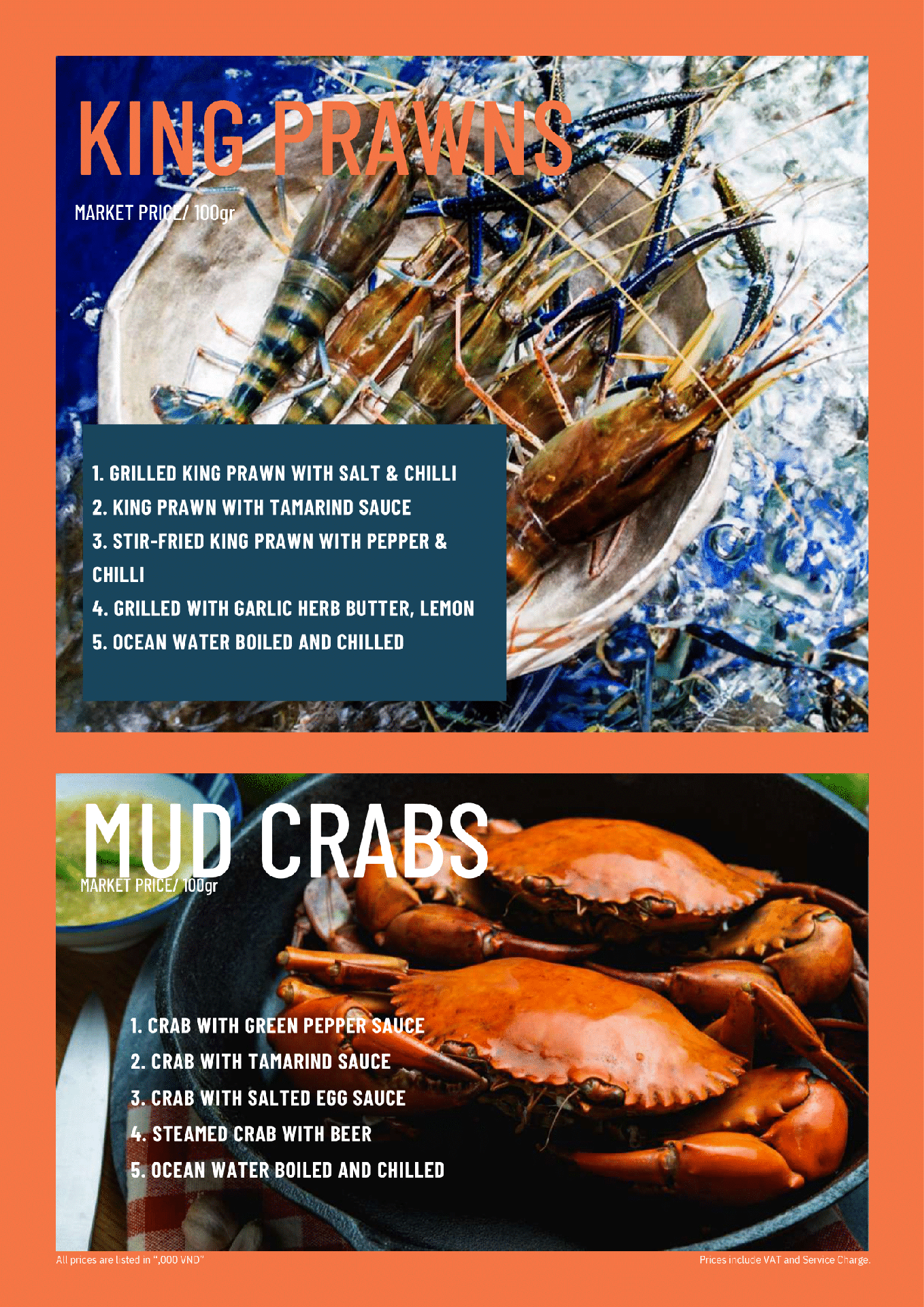 We showcase the bounty of Vietnam’s waters through live seafood tanks featuring daily catch and premium imported delicacies. Each selection can be prepared in a variety of ways: choose bold, authentic Vietnamese flavours that honour the region’s seafood culture, or opt for Mediterranean-style preparations if that’s more to your taste. Our chefs use mango wood grilling, steaming, baking, and flash frying to bring each ingredient to life.