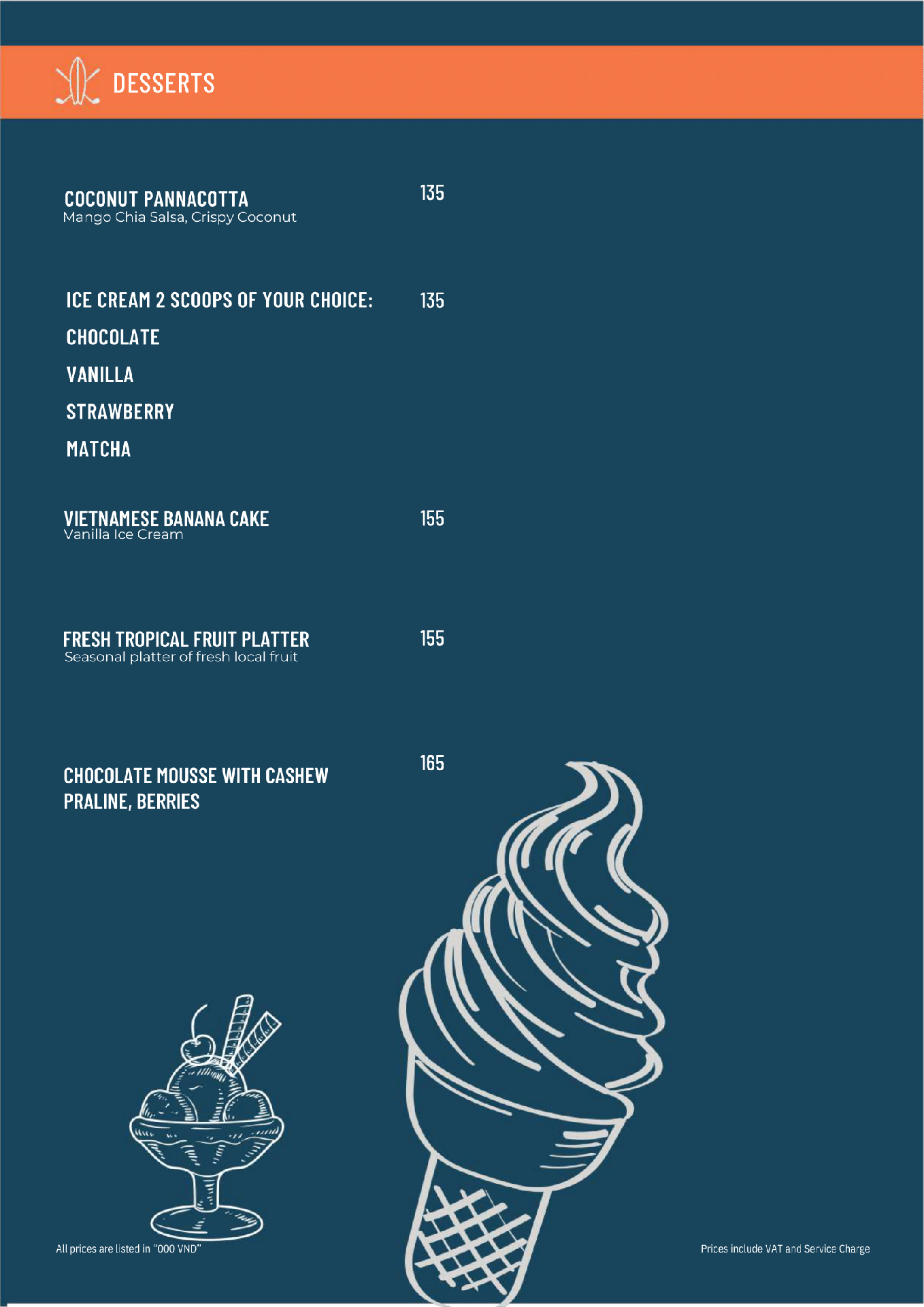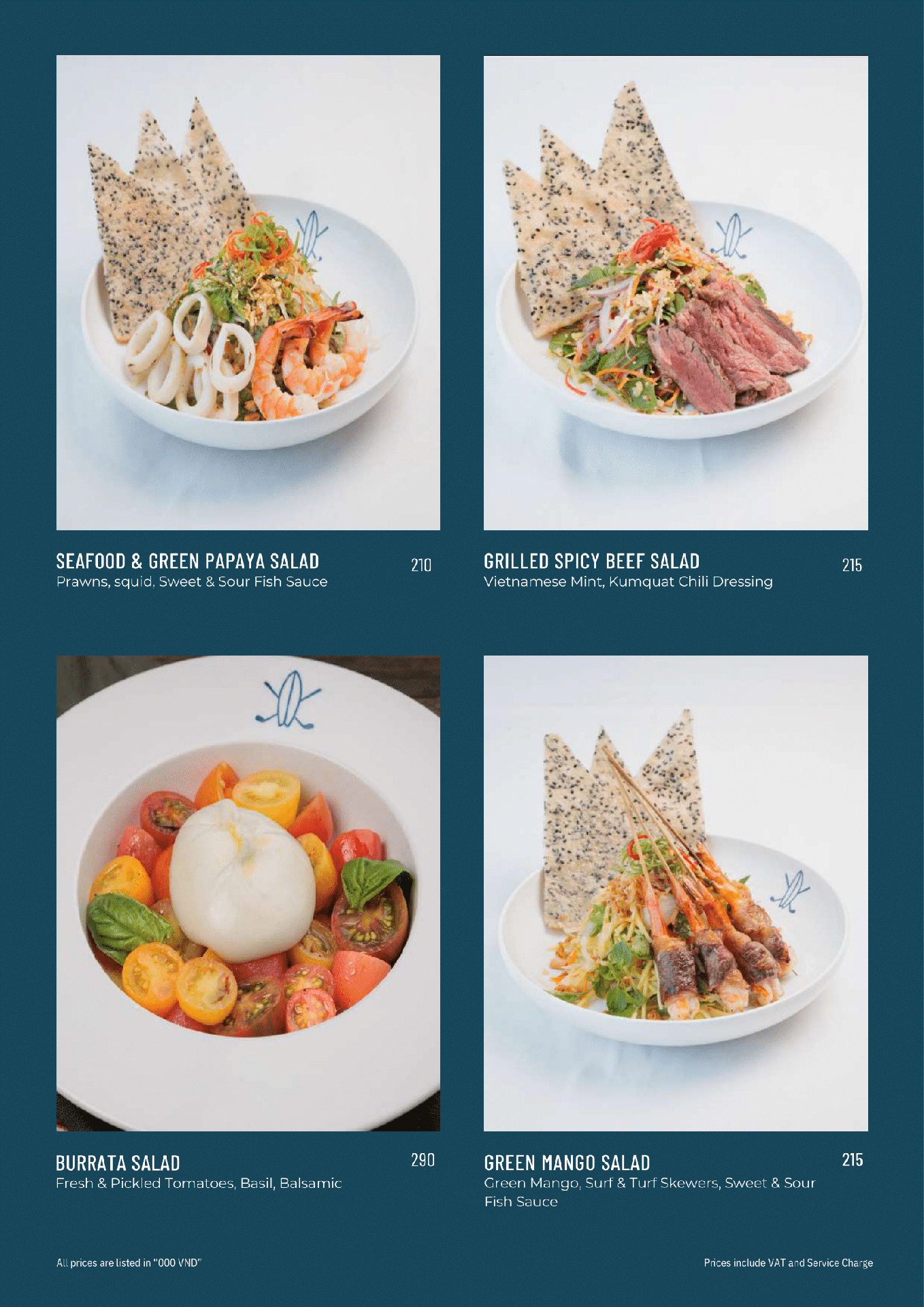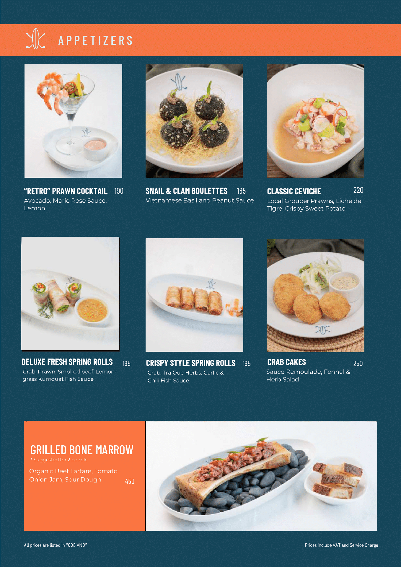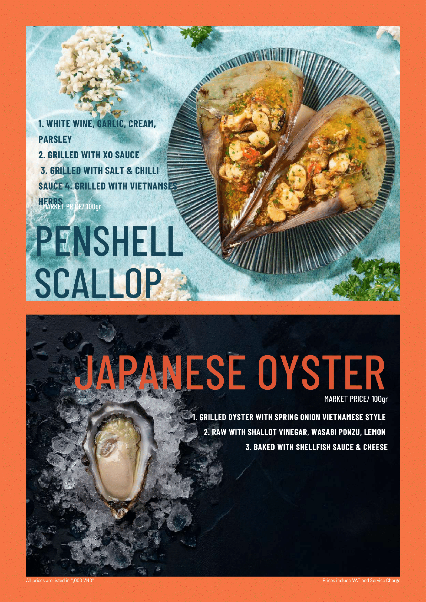 We showcase the bounty of Vietnam’s waters through live seafood tanks featuring daily catch and premium imported delicacies. Each selection can be prepared in a variety of ways: choose bold, authentic Vietnamese flavours that honour the region’s seafood culture, or opt for Mediterranean-style preparations if that’s more to your taste. Our chefs use mango wood grilling, steaming, baking, and flash frying to bring each ingredient to life.