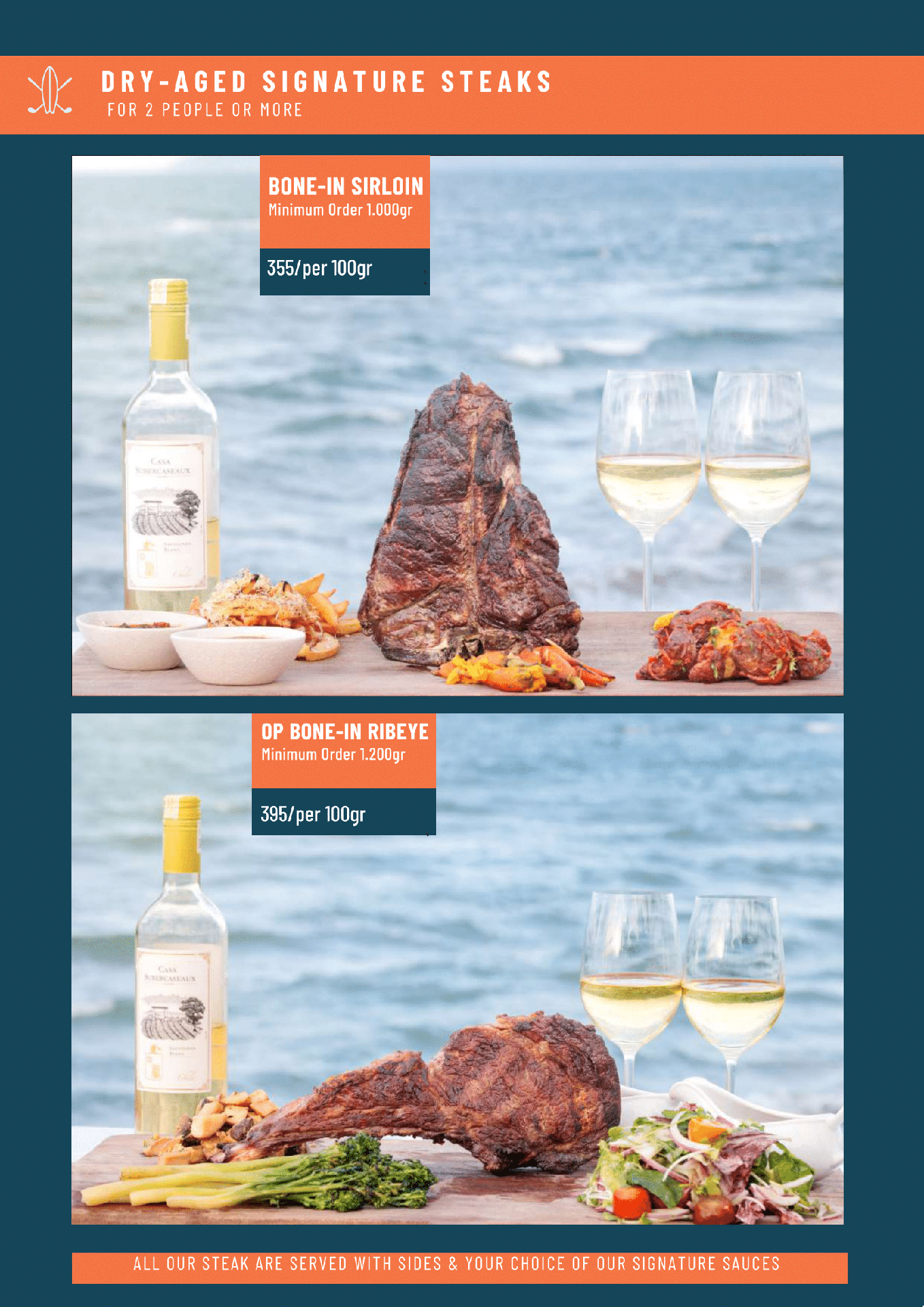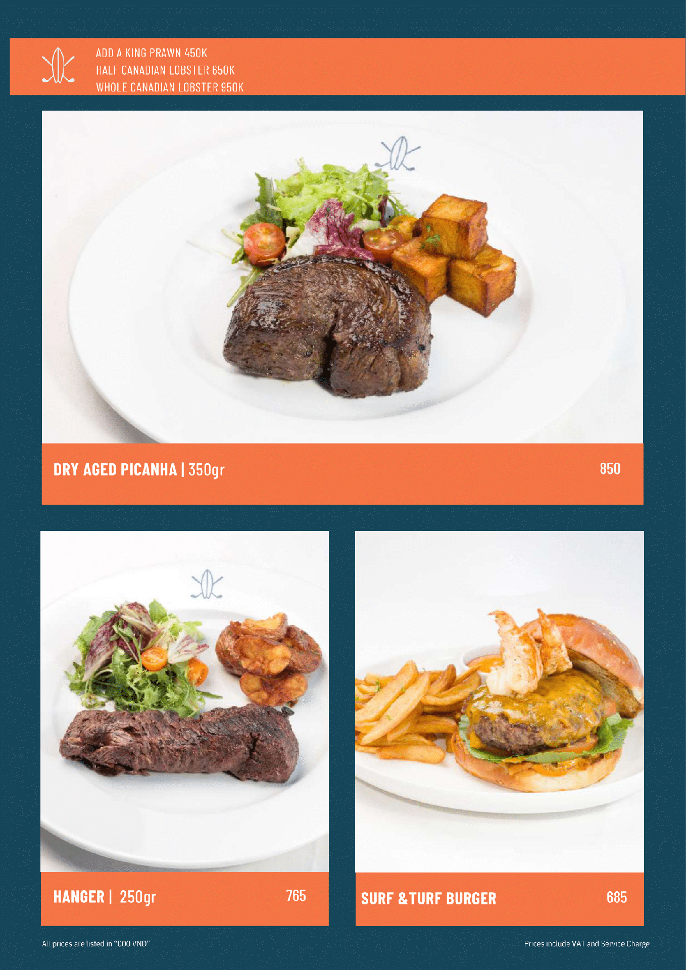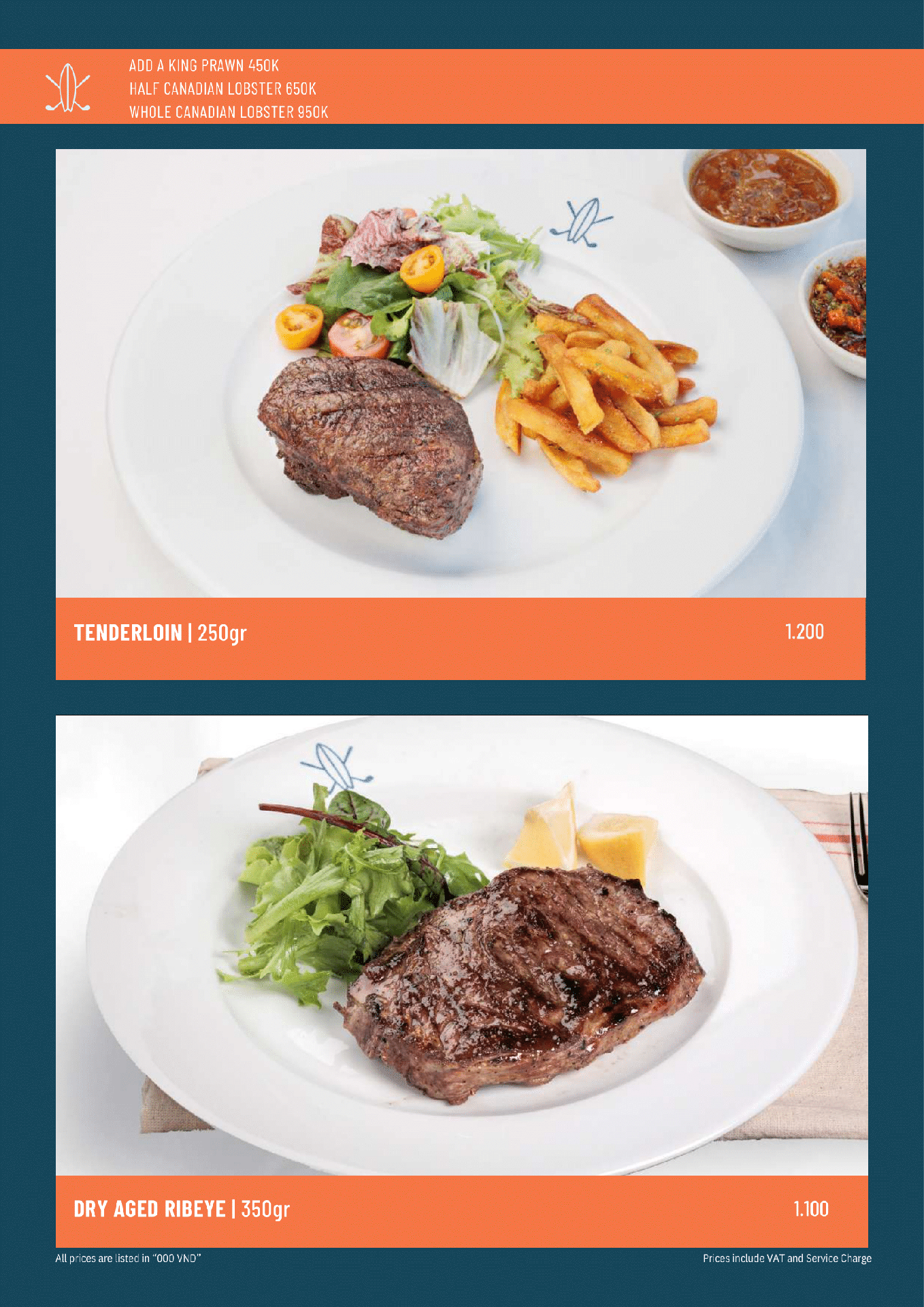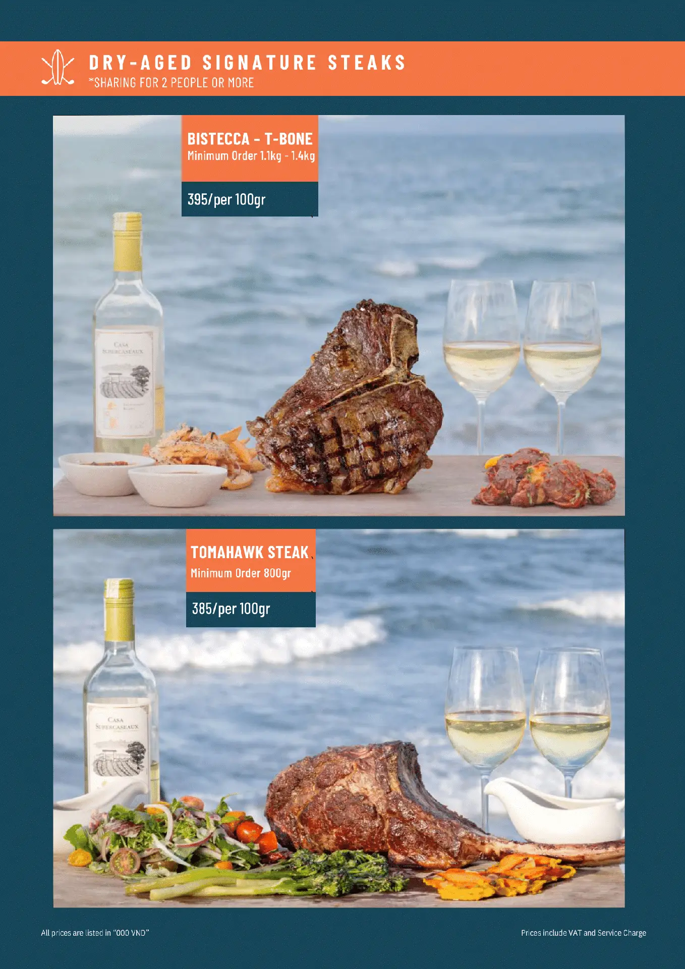 Every steak can stand alone, or be turned into a Surf & Turf by pairing it with lobster, prawns, or the seafood of your choice, served from tank to table for an immersive dining experience.